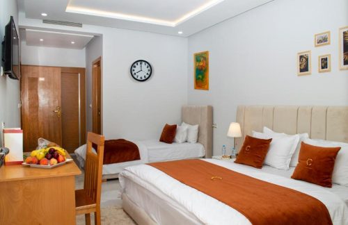 Découvrez l’alliance parfaite entre design contemporain et hospitalité marocaine au sein de nos 34 chambres et suites, pensées pour être votre sanctuaire privé à Dakhla. Que vous soyez de passage pour un séjour d’affaires, une aventure sportive sur le lagon ou une escapade relaxante, chaque espace a été conçu avec une attention méticuleuse portée au détail et au bien-être. Baignées de lumière naturelle et dotées d’une literie de qualité supérieure, nos chambres offrent un confort acoustique et thermique optimal. Profitez d’équipements modernes — Smart TV, WiFi fibre optique et climatisation individuelle — dans un cadre épuré qui invite à la sérénité. Au Golden Sunset Dakhla, nous ne vous offrons pas seulement une chambre, mais une expérience de repos inégalée au cœur de la perle du Sud. »